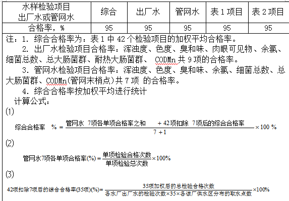 6.8??水質(zhì)檢驗(yàn)項(xiàng)目合格率要求見(jiàn)表4。